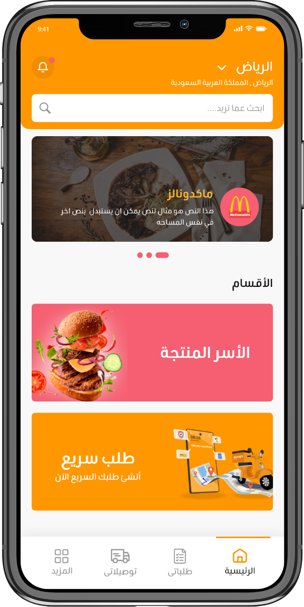 احصل على طلباتك المفضلة مباشرة إلى باب منزلك بفضل نظام توصيل سريع وفعّال يعتمد على مناديب مشتركين في التطبيق.