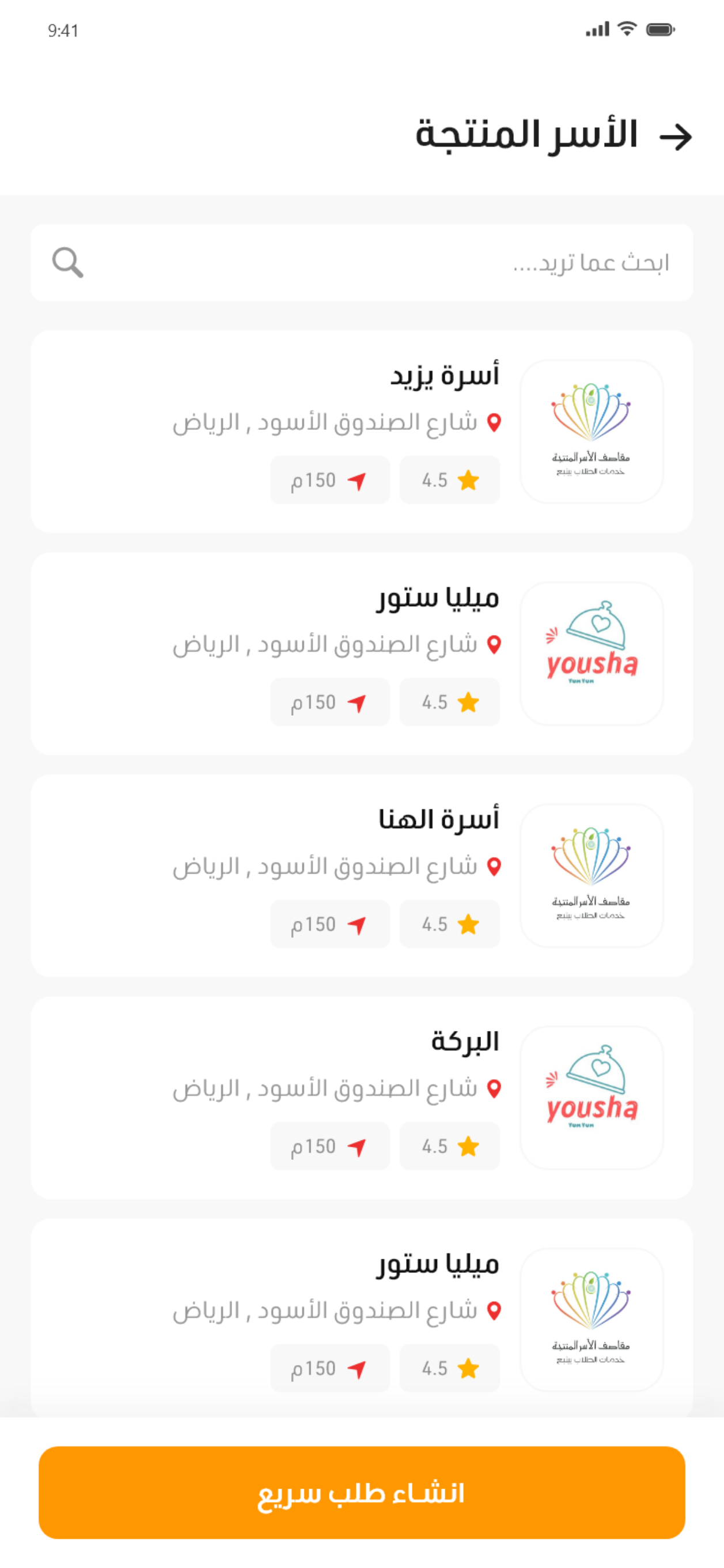 استمتع بتجربة تسوق فريدة عبر تطبيقنا، حيث يلتقي الحرفيون المحليون بمحبي المنتجات الفريدة. اكتشف تشكيلتنا المميزة من منتجات الأسر المنتجة، حيث تضم خدمات تجهيز المناسبات الرائعة والمأكولات اللذيذة وغيرها الكثير. واحصل عليها بكل سهولة من خلال مجموعة من مناديب التوصيل ذوى الكفاءة العالية.